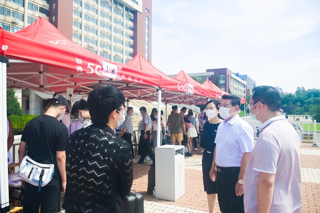 学校党委高度重视学生开学返校工作,多次召开专题会议进行部署,要求各单位部门严守阵地、履职尽责,全力确保秋季学期开学返校工作平稳顺利。8月22日上午,校长白海力、校党委副书记王罡到学校接待点位督查指导学生返校报到工作,并向坚守一线辛勤工作的教职员工表示亲切慰问,对返校学生表示欢迎。白海力与师生亲切交谈时,叮嘱他们在做好疫情防控工作的同时,要做好秋季学期开学各项工作,以崭新面貌迎接新学期的到来。党委学工部利用假期对宿舍楼内公共区域、洗手间、洗衣机房进行清洁整治,为学生返校提供了舒适住宿环境。各学院也按照学校要求,在学生返校前指导学生做好健康监测,准确摸排学生信息,开展多形式疫情防控宣传教育,及时关注返校学生诉求,畅通学生沟通渠道,努力为返校学生提供各类服务与指导。