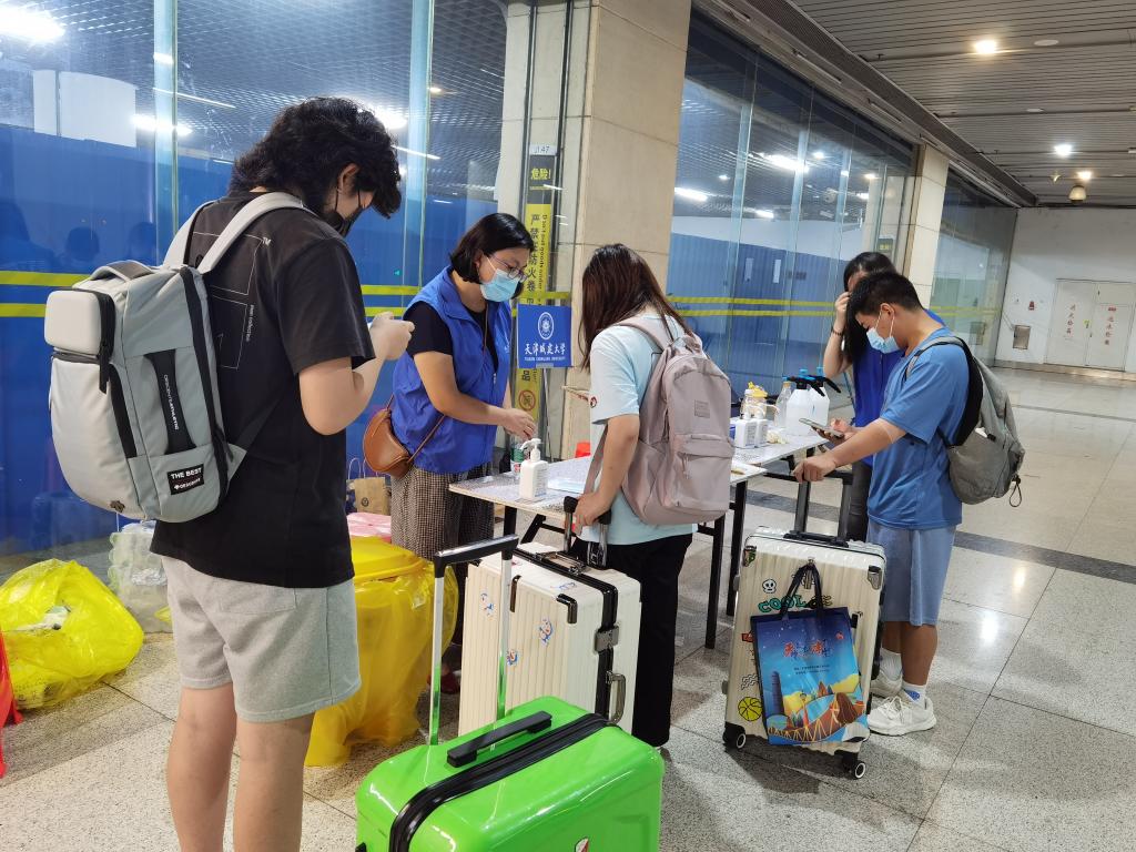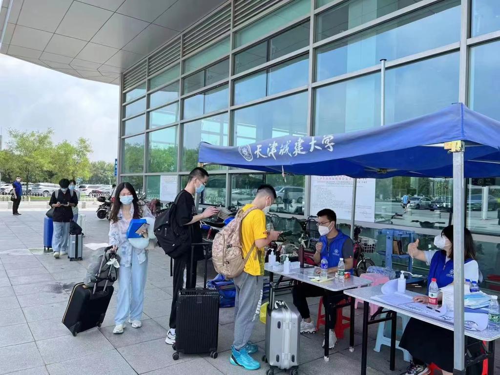 为更好服务“三站一场”返校学生,学校派出69名辅导员,化身“接站员”“引导员”和“测温员”,对经“三站一场”返校学生提供点对点管道式接站服务,引导外地返津学生完成测温,查验双码、扫入校码及乘车,并根据学生抵津时间和站点实际适时调度84辆车,保障同学们安全“到家”。