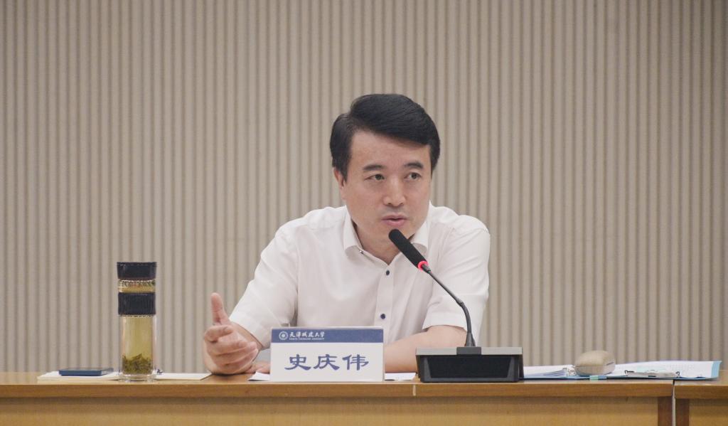 史庆伟强调,新的形势、新的任务赋予高校思想政治工作新的要求和新的使命,也为我们提供了更为广阔的空间和舞台。希望全校各级党组织和广大党员干部要深入学习贯彻习近平新时代中国特色社会主义思想,尤其是习近平总书记关于教育的重要论述,认真贯彻落实天津市第十二次党代会精神,把“迎盛会、铸忠诚、强担当、创业绩”主题学习宣传教育实践活动工作与学校教育事业发展紧密结合,从关系学校发展命运的高度,切实发扬“钉钉子”的踏实精神和“踏石留印、抓铁有痕”的务实作风,以动真碰硬的勇气,坚定不移的决心和求真务实的举措,旗帜鲜明、理直气壮地抓好思想政治工作,切实提高对思想政治工作规律性的把握,加快高质量构建思想政治工作体系,努力把思想政治工作的政治优势、组织优势转化为推动学校改革发展的意志力、竞争力和向心力,为推动学校事业高质量发展提供强大动力和坚强保障,切实开创学校思想政治工作新局面。
