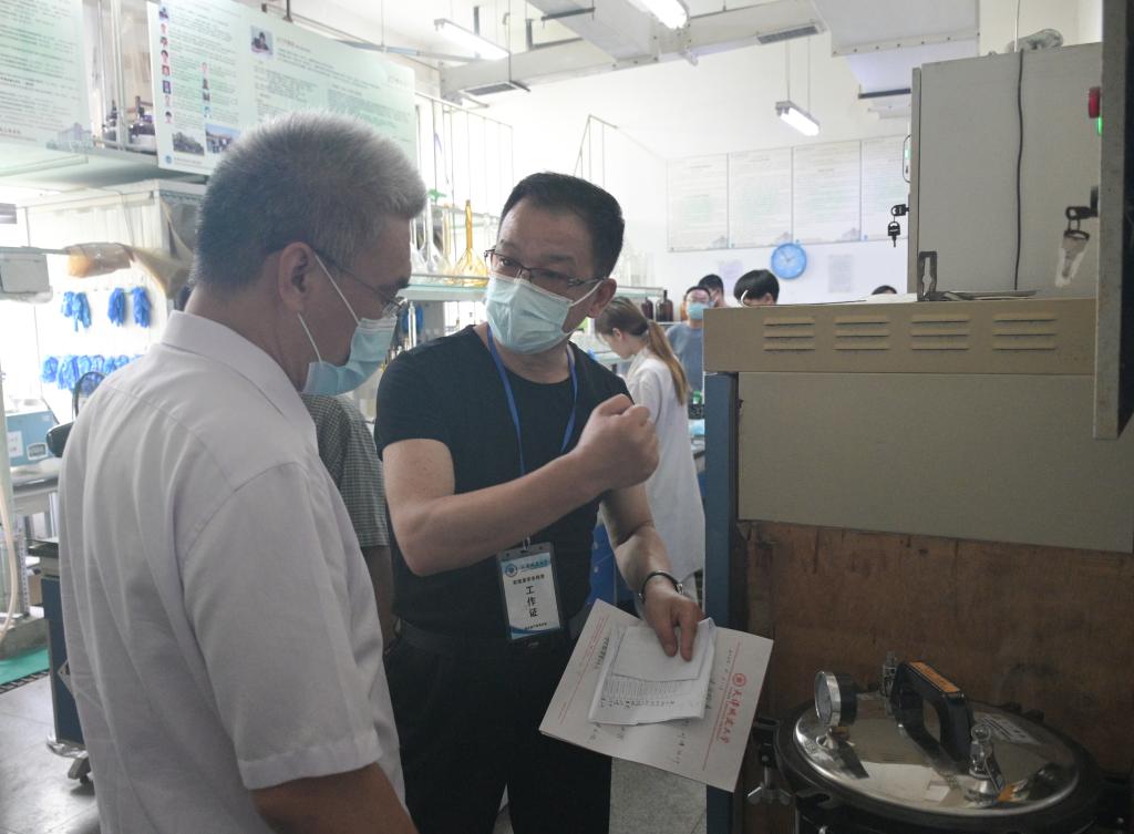 6月21日上午,教委专家组一行对Beat365官网实验室进行了全面检查。副校长崔雅利、保卫处、科技处、研究生处、国资处等部门负责人陪同检查。