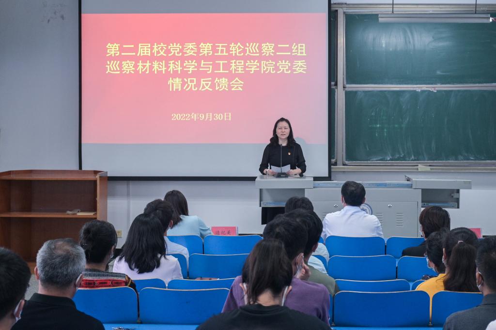 按照学校党委巡察工作统一部署,2022年9月30日,第二届校党委第五轮巡察二组向材料科学与工程学院党委反馈了巡察情况。校党委副书记、校长白海力出席反馈会,市纪委监委驻学校纪检监察组副组长逯纪美、巡察工作领导小组成员、巡察二组组长李佳、巡察组全体成员、巡察办、派驻纪检组同志、材料学院全体教职工和部分学生代表参加反馈会。会议由材料学院党委书记朱复义主持。