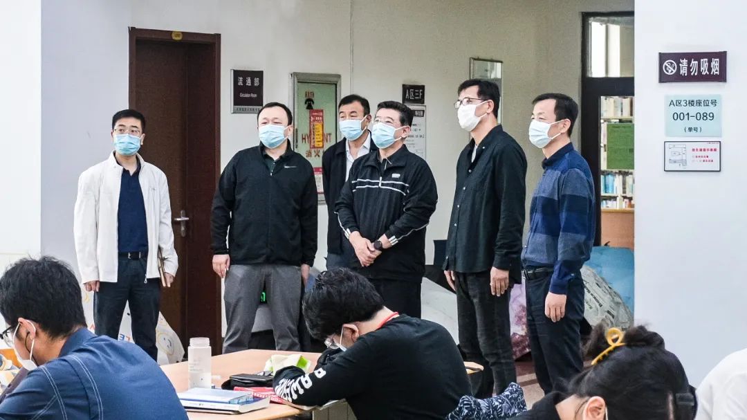 在图书馆,听取了近年来围绕校园文化建设而深入推进的图书馆文化建设情况,白海力给予充分肯定。他走到正在图书馆上自习的准备考研的同学中间,悉心了解同学们的准备情况,祝大家心想事成、金榜题名。