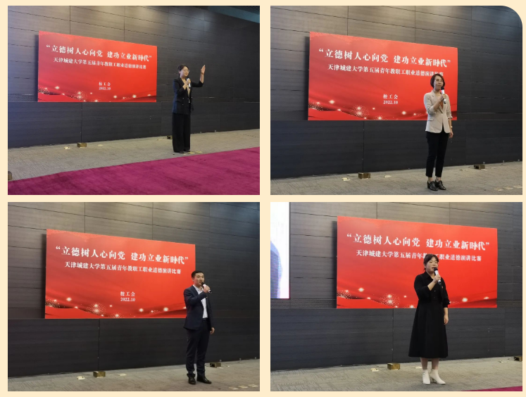 作为校工会品牌活动,青年教职工职业道德演讲比赛已连续举办五届。活动旨在以多样化的活动载体和展示平台,激发广大教职工以赤诚之心、奉献之心、仁爱之心,积极投身高水平城建特色大学建设。