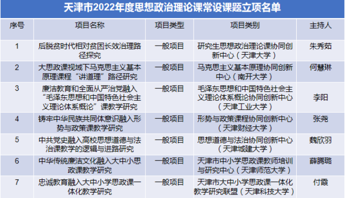 近日,市教育两委公布了2022年度思想政治理论课常设课题立项名单,马克思主义学院7个项目获批立项。