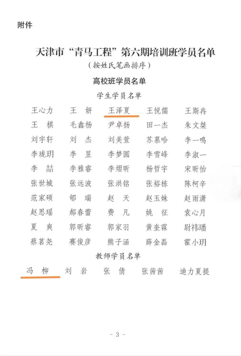 近日,团市委下发了《关于天津市青年马克思主义者培养工程第六期培训班学员的录取通知》,Beat365官网外国语学院组织员冯柳和校“青马工程-薪火班”学员、地质与测绘学院学生王泽夏从全市20余所高校的150余名候选人中脱颖而出,成功入选为“天津市青年马克思主义者培养工程”(以下简称“青马工程”)第六期培训班学员。