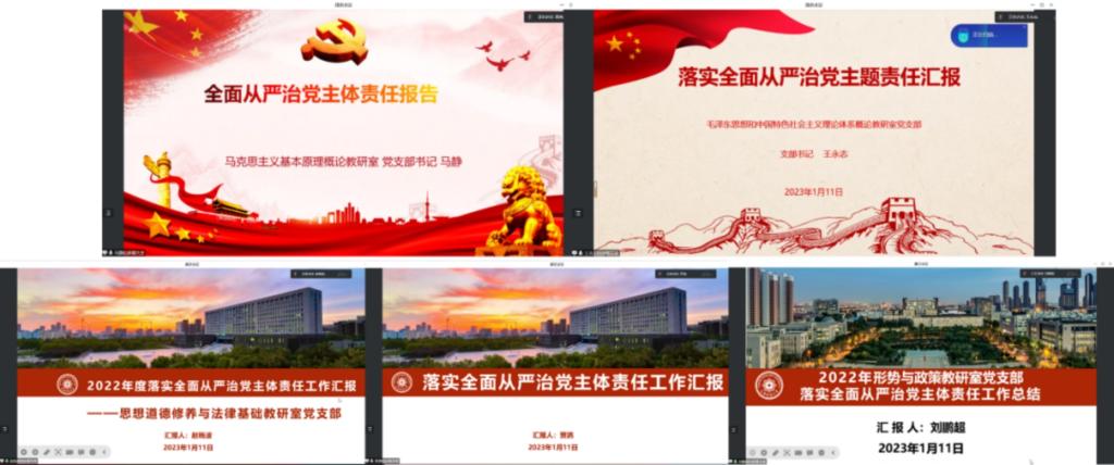 学院党总支书记高燕代表党总支委员会汇报了马克思主义学院党总支2022年落实全面从严治党主体责任暨党风廉政建设工作情况,对2023年落实全面从严治党工作提出四项要求:一是认真学习宣传贯彻党的二十大精神,充分领会“两个确立”的决定性意义,坚持用习近平新时代中国特色社会主义思想铸魂育人,将全面从严治党工作与学院工作同部署、同落实;二是以政治建设为统领,积极推进党员量化积分试点工作,将全面从严治党工作贯彻落实到“最后一公里”;三是严格落实好意识形态工作责任制,增强忧患意识,坚持底线思维,切实维护校园意识形态安全。四是持续做好党支部书记和委员的培训,提升支部全面从严治党工作水平,深入开展“党员创先争优计划”,培育良好政治生态;五是勇于自我革命,巩固和优化巡察巡视整改成果,落实落细全面从严治党工作,为第四聘期各项工作开好局、起好步,为推动新时代马院建设保驾护航。