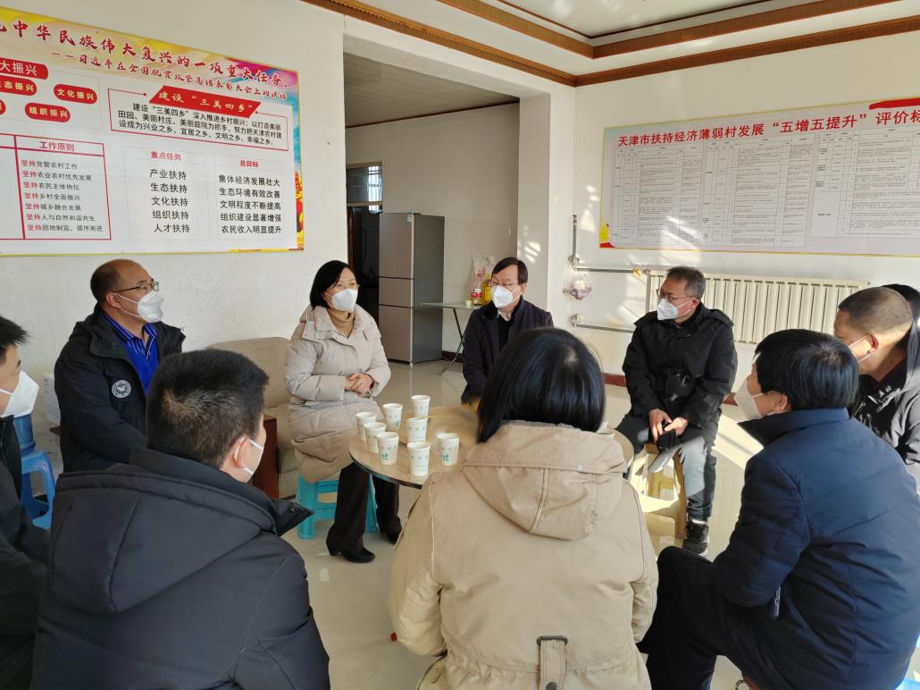 座谈会上,王罡介绍了学校情况,对宝坻区区委组织部、帮扶办、王卜镇政府对学校驻村扶持工作的支持表示感谢,要求工作队要以党建为引领,学习贯彻落实好党的二十大精神,以饱满的热情投身乡村振兴,助力村民增收、村集体发展,圆满完成各项扶持工作任务。两个工作队队长贾凤勇、陈子辉分别介绍了一年的扶持经济薄弱村发展的工作情况和下一步的工作计划。张新宇对学校多年来对宝坻区农村发展的帮扶工作表示感谢,肯定了工作队取得的成绩,并希望进一步充分发挥自身优势推动扶持经济薄弱村发展,其他区、镇领导也表示将大力支持学校的驻村工作。 王罡一行深入宝坻区王卜庄镇龙潭庄村、八间村、东蛤窝村、东泗河村进行了实地考察,为困难群众发放春节慰问品,带去了学校党委的关怀。在困难群众家中,王罡与村民促膝长谈话家常,询问他们的身体状况、家庭收入等情况,嘱咐驻村工作队要时刻关注困难群众,及时帮助他们解决生活中遇到的问题和困难。村民表达了对学校和驻村工作队的谢意,感谢驻村工作队给村里带来的变化,相信在党和政府的关怀下,日子会越来越好。