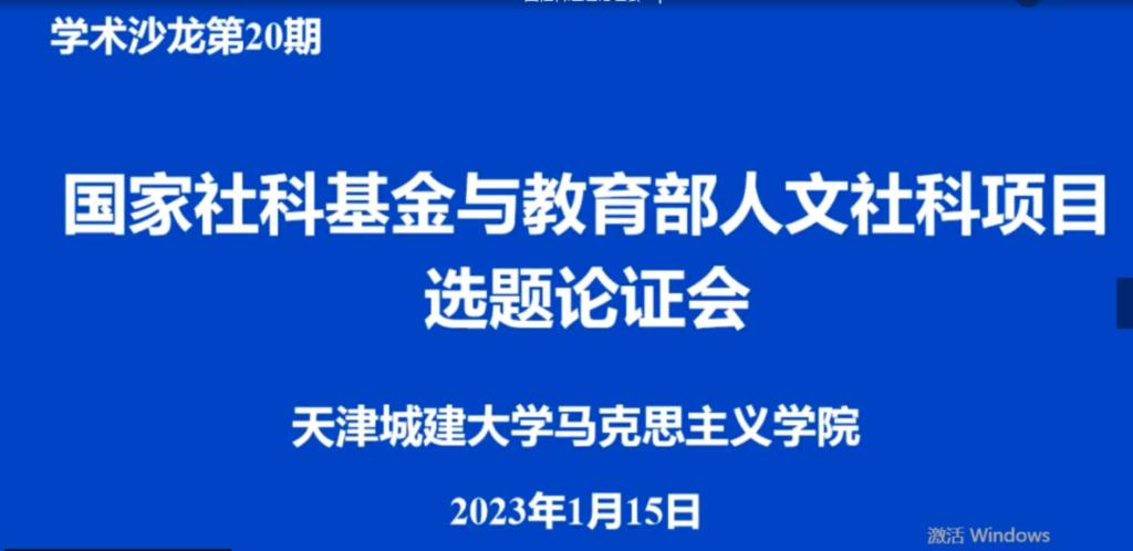 1月15日,马克思主义学院在线举办国家社科基金和教育部人文社科项目选题论证会,邀请河北师范大学马克思主义学院李素霞教授、南开大学马克思主义学院副院长孙寿涛教授、天津师范大学马克思主义学院副院长李朝阳教授担任点评专家。学院申报2023年国家社科基金和教育部人文社科项目的教师和中青年教师代表等30余人参加,副院长贾恒欣主持会议。院长何继新对三位专家表示了热烈欢迎和衷心感谢。