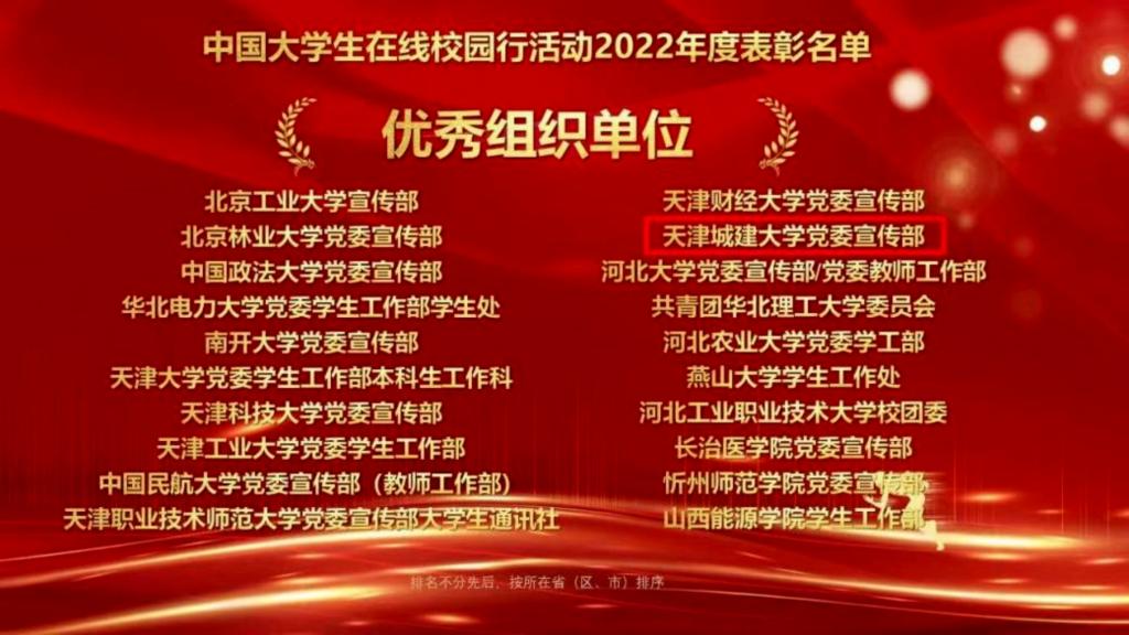 近日,市委教育工委、市教委印发《关于公布2022年度天津市大学生思想政治教育工作考核结果的通知》,Beat365官网大学生思想政治教育工作年度考核基础性工作分数在全市54所高校中排名第一,综合分数排名第五,喜获“2022年度天津市大学生思想政治教育工作优秀单位”,Beat365官网已连续三年获此殊荣。