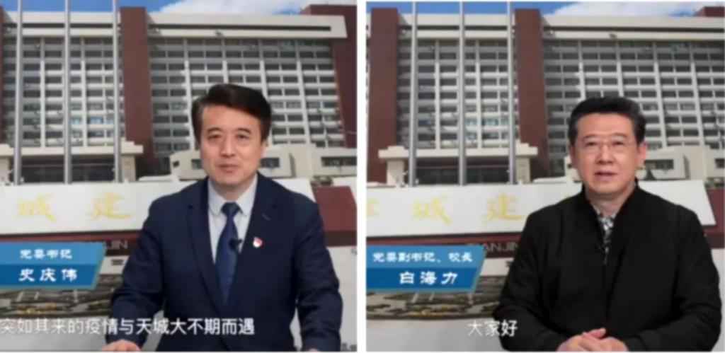 近年来,学校党委全面贯彻党的教育方针,把思想政治工作贯穿教育教学全过程,构建起了全员全过程全方位“大思政”工作格局;学校主要领导严格落实领导干部讲思想政治理论课制度、联系思政课教师制度等,校党委书记、校长带头走进课堂讲授思政课、开学第一课,全面提升学校思想政治工作质量。校党委书记史庆伟讲授的思政品牌课程和在毕业典礼的演讲2项视频资源获评天津市首次“大学书记校长大课堂”优秀资源。校长白海力讲授的思政品牌课程视频资源获评天津市第二批“大学书记校长大课堂”优秀作品。疫情期间,书记、校长以《勇于担当、共克时艰,天城大人在一起》为主题讲授思政微课。召开学生思想政治工作调研会,书记、校长深入调研“一站式”学生社区建设助力提升“三全育人”质效,以学生党建为龙头强化学生思想政治教育工作。