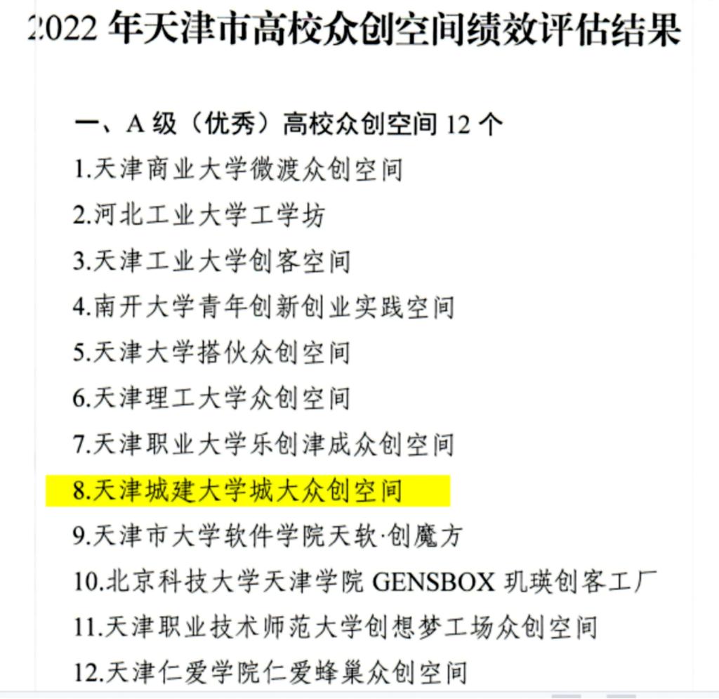 学校连续7年获评天津市A级(优秀)高校众创空间