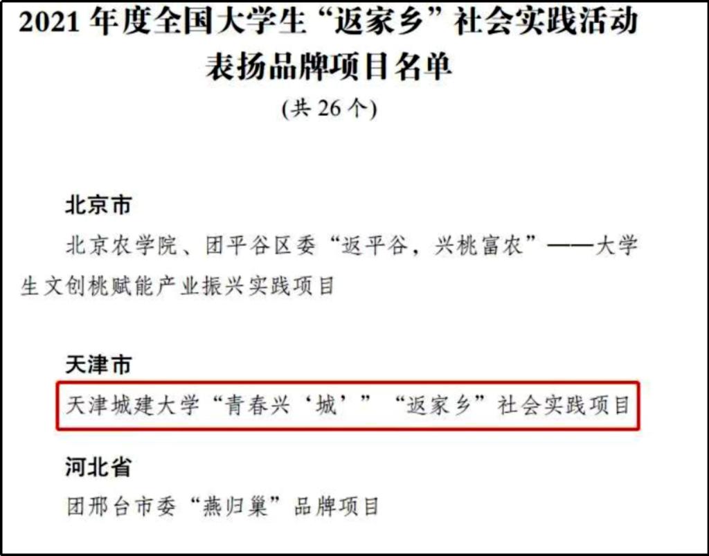 学校“青春兴‘城’”“返家乡”实践项目”荣获全国大学生“返家乡”社会实践活动表扬品牌项目