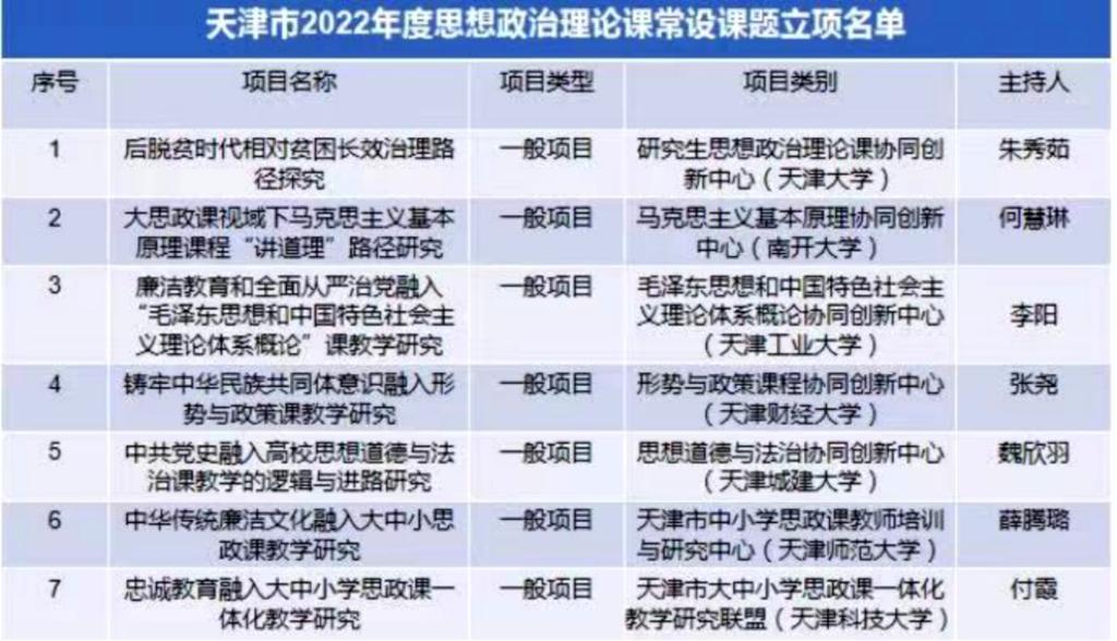 1人获批2022年度天津市高校思想政治工作精品项目结项优秀