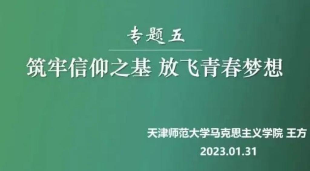 天津师范大学马克思主义学院教师王方围绕“专题五:筑牢信仰之基 放飞青春梦想”,结合党的二十大报告具体内容,介绍了编写总体思路以及教学建议,并对本专题教学指导方案的使用进行了细致说明。