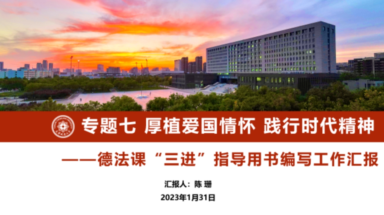 Beat365官网马克思主义学院教师陈珊结合“专题七:厚植爱国情怀 践行时代精神”,详细介绍了“专题七”编写和修订的情况,表示要以党的二十大精神统领全篇,将习近平总书记考察天津时的重要讲话精神融入教学。