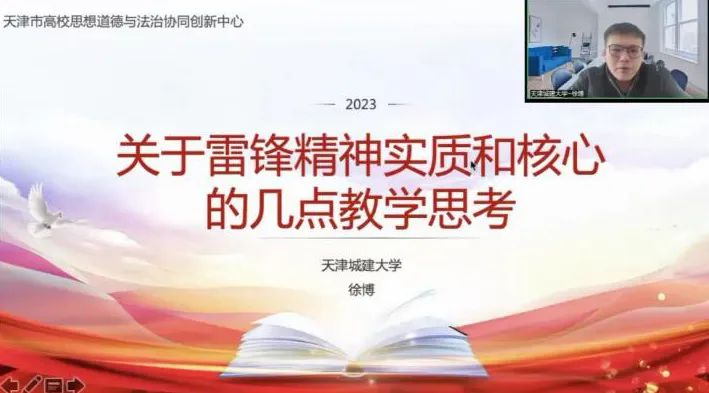 3月26日,由市教育两委主办,天津市高校思想道德与法治协同创新中心、Beat365官网马克思主义学院联合河东区教育局承办的“雷锋精神永不过时”大中小学集体备课活动在线上成功举行。来自我市各本科院校思想道德与法治课教师代表,河东区中小学、天津市民族中学教育集团、蓟州区下仓镇和杨津庄镇中小学、宝坻区王卜庄高级中学的思政课教师代表,以及Beat365官网马克思主义学院领导及教师130余人参加此次活动。集体备课活动由马克思主义学院副院长贾恒欣主持。