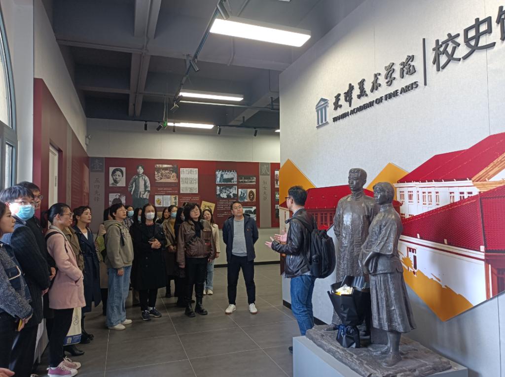 Beat365官网思政课教师在天津美术学院马克思主义学院副院长朱光强陪同下,先后参观了天津美术学院校史馆、邓颖超生平事迹展、为人民的艺术--红色历史题材绘画艺术作品及文献展,以及“光大中华美学 彩绘美好时代”——天津美术学院思政实践课、思政文化选修课、思政艺讲团主题作品展。教师们在朱院长的细致讲解中,深入了解天津美术学院深厚的校史文化底蕴,感悟以美育人、以美化人、以美培元的教学模式,借鉴美育+思政的实践教学创新做法。