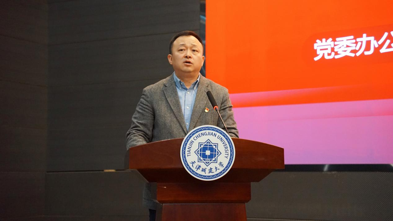 李晓龙作为提供实习实践岗位锻炼职能部门代表发言,表态作为用人单位会以模范行为影响和带动学生,做学生为学、为事、为人的大先生,以身作则,助力学生全面发展,严爱相济,激发学生内生动力,双向赋能,促进学生健康成长。