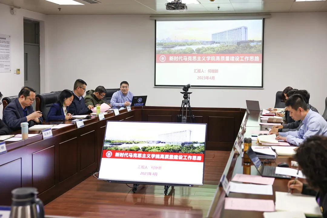 会上,马克思主义学院院长何继新从新时代马克思主义学院建设现状基础、高质量建设工作思路以及高质量建设制约瓶颈三个方面着重介绍了落实加强新时代马克思主义学院建设的工作情况。