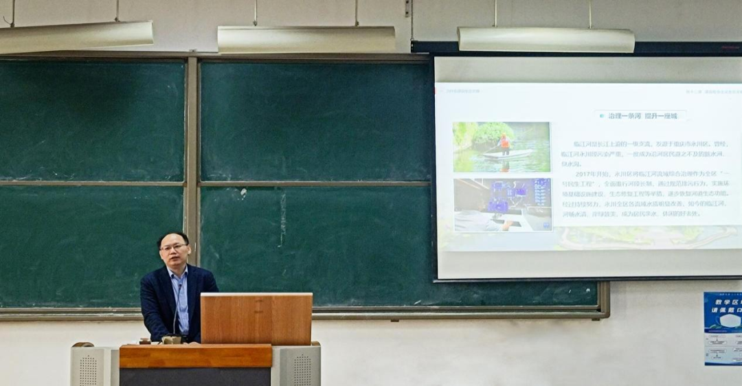 授课过程中,王中良抛出一连串的问题,与同学们面对面掀起“头脑风暴”。通过勾勒人类文明的发展历程,从顺应人类文明进程、破解我国经济社会发展短板问题、满足人民日益增长的优美生态环境需要、应对全球生态环境领域挑战等方面阐述生态文明建设的必要性和紧迫性;进而深入浅出地剖析人与自然和谐共生的要求、绿水青山与金山银山的辩证关系、良好生态环境是最普惠的民生福祉、用最严格制度最严密法治保护生态环境等内容阐明我们要建设什么样的生态文明,要树立什么样的社会主义生态文明观;最后鼓励青年学子要做生态文明建设的宣传者、倡导者、践行者,为建设美丽天津、美丽中国贡献青春力量。