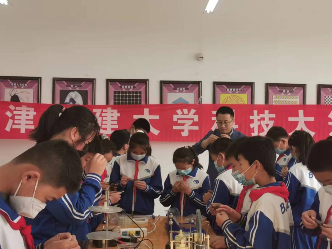 近日,材料科学与工程学院、城市艺术学院、理学院一行8人来到宝坻区王卜庄小学,与学校驻宝坻区王卜庄镇东泗河村、东蛤窝村工作队共同参加科普基地活动站揭牌仪式并开展科普活动。材料学院党委副书记梁丽,科普基地负责人李计元,艺术学院副院长殷陈君、王璞,理学院副院长张守超,物理实验中心主任刘枝朋,驻村工作队队长陈子辉,王卜庄镇副镇长管连冠,王卜庄镇教委总校长李国华,王卜庄小学校长刘军参加揭牌仪式。