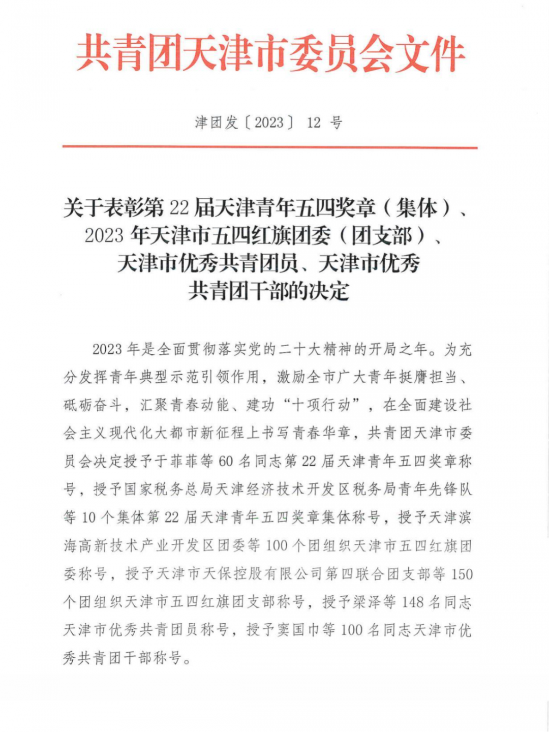 此次获评全国高校“活力团支部和天津市五四红旗团支部,是对学校团委扎实推进共青团工作改革成果的充分肯定。今后,学校团委将持续深入贯彻习近平总书记关于共青团在高校学生思想政治工作中要发挥主力军作用的重要要求,紧扣共青团的政治职责和工作主线,深化改革攻坚,扎实推进全面从严治团,提升团组织建设,做好的党的助手和后备军,汇聚青春动能,建功“十项行动”,团结带领广大团员青年在全面建设社会主义现代化强国、实现中华民族伟大复兴的中国梦的历史进程中建功立业。