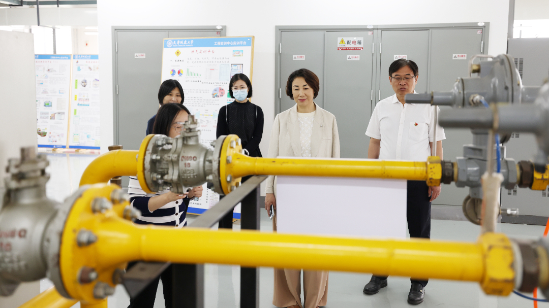 在实验楼和工程实训中心的能源与安全工程学院实验(训)室,指导组考察了燃气冷热电三联供实验室、洁净空调实验平台、地下燃气管道综合检测平台、燃气调压综合测试平台等,实地了解学校实践教学开展、成果产出等方面情况。