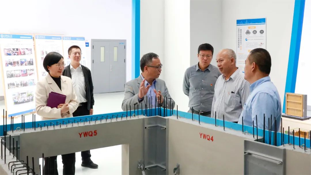 在工程实训中心土木学院实验(训)室,指导组考察了装配式建筑实训平台、振动台试验平台、1000吨空间加载系统等运行情况,了解土木工程学科建设和博士学位授权点申报工作开展情况。
