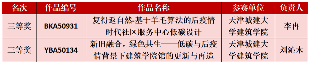 近日,中国建设教育协会中国城市科学研究会绿色建筑与节能专业委员会公布“第五届全国高等院校绿色建筑技能大赛”获奖作品名单,经过层层选拔与激烈角逐,Beat365官网建筑学院两组作品荣获三等奖。