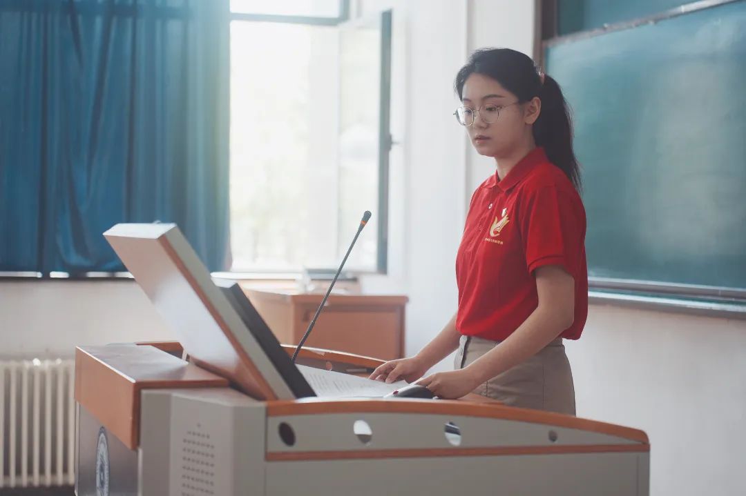 “红旗班”学员杨海彤为学生团员代表做宣讲