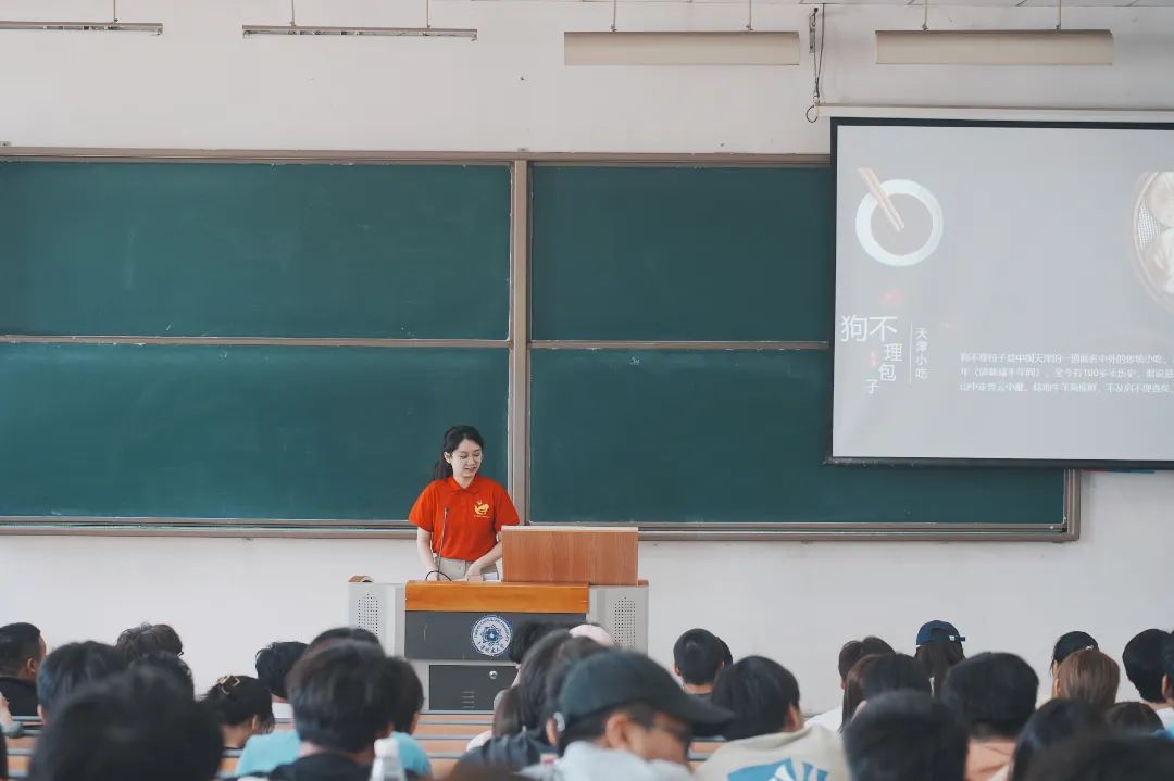 宣讲团成员们以“津之印象 津绘岁月 在津启程——我讲我求学的城市”为题,用朋辈视角为同学们讲述了这座自己求学的城市——天津。他们围绕天津优越的地理位置、深厚的文化底蕴、多样的津味美食、知名的地标建筑和创新的政策优势等内容,分“海河育儿女,烟火藏诗意,凝聚新活力,开启新征程”四个篇章进行了精彩讲述。在场的同学们对天津有了深入的了解,真切感受到了天津的风土人情,也了解到天津出台了一系列有利于青年成长成才的政策。大家深刻感受到天津对青年的培养与期待,留在天津更有作为,大大增强了同学们留津发展、建设天津的意愿。