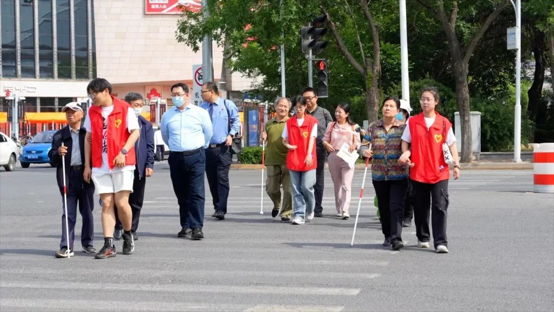 志愿者们暖心引领视障朋友们过马路