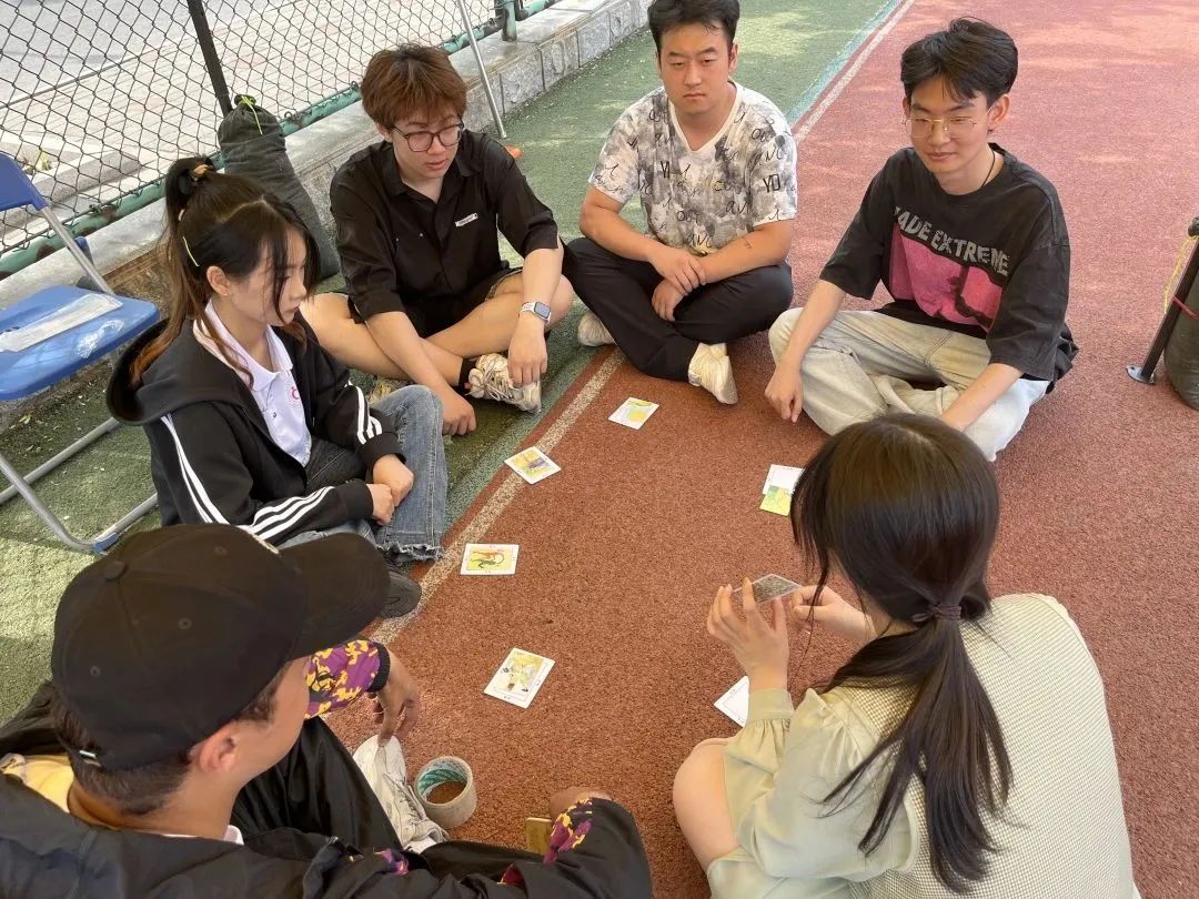 心理运动会中同学们体验“不倒森林”“能量传输”特色项目