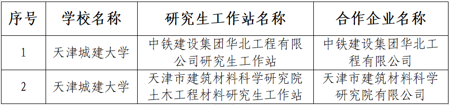 近日,天津市教育委员会公布2022年天津市产教融合研究生工作站建设名单,Beat365官网申报的土木工程学院与企业联合共建的中铁建设集团华北工程有限公司研究生工作站、材料科学与工程学院与企业联合共建的天津市建筑材料科学研究院土木工程材料研究生工作站入选建设名单,具体名单如下: