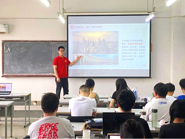 5月初,学工部邀请马克思主义学院思政课教师指导“红旗班”全体学员开展了深入细致的宣讲示范和磨课培训,通过“学、研、备、练、讲”五步联动,为接下来的系列微宣讲活动奠定了坚实基础。5月15日以来,“红旗班宣讲团”成员深入党团支部、走进学生社区、融入学生社团,通过主题班会、主题团课、支部学习、座谈研讨等形式开展了微宣讲50余场。一场场宣讲,冒热气又接地气,多维度展示了天津这座城市的魅力,让更多天城大学子深入了解天津,更加热爱自己所求学的城市,引导同学们自愿留在天津、扎根天津、奉献天津。