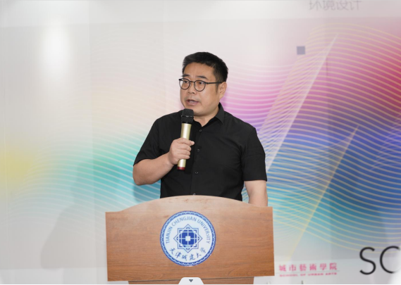 马西庆作企业代表发言,为毕业生送上真挚的祝福。他表示设计不仅是一种专业能力,更是一种思维方式,是一种解决问题的能力。毕业也是新的开始,希望同学们在未来的设计生涯中更加大放异彩,积极为社会作出贡献。