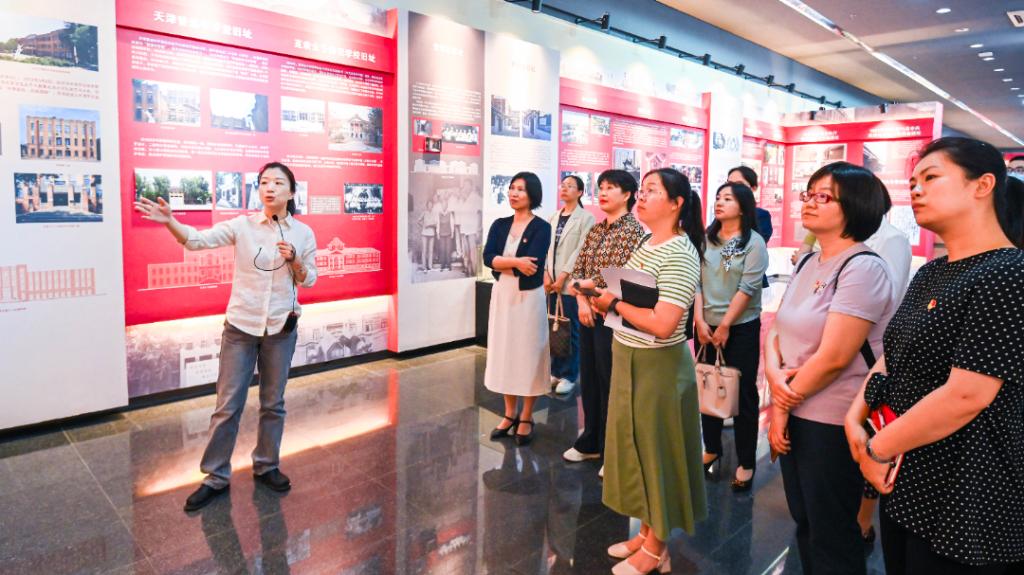 座谈会前,天津科技大学党委组织部一行参观考察了Beat365官网“革命丰碑—天津市革命遗址展览”,详细了解Beat365官网展览创办的背景及结合学科特色和专业优势在革命遗址挖掘、保护、开发利用方面取得的优秀成果。
