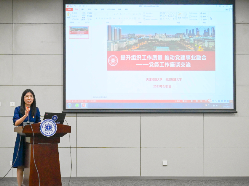 两校党务干部聚焦不同主题分为2组开展座谈交流。组工干部座谈交流会上,沙荔对天津科技大学党委组织部来校调研交流表示热烈欢迎并就近年来Beat365官网干部队伍建设的整体情况,特别是年轻干部选、育、管、用等四个方面的思考和经验做法做了详细介绍,此外,还就党员教育培训工作品牌——“两级七层次”党员发展全程递进式教育培养体系和干部教育培训工作品牌——“大培训体系”两项工作的开展情况进行了介绍。张春艳对学校的接待表示诚挚感谢并就天津科技大学干部队伍建设情况,特别是专职组织员队伍建设情况以及基层党建领航工程创建和作用发挥的思路理念和举措方法等进行了详细介绍。随后双方围绕近年组织工作面临的热点、难点问题进行了充分交流探讨,并表示未来将持续加强沟通交流,互学所长,共同提升组织工作能力,促进两校基层党建工作再上新水平。