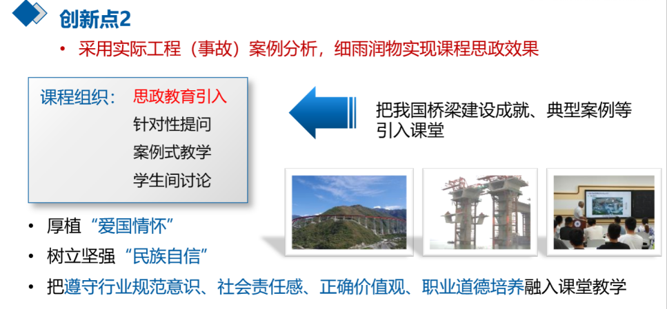 1.强化学生解决工程实际问题能力培养:通过桥梁施工所涉及传力机制讲解、对实际工程事故案例分析,培养学生灵活应用力学知识解决工程实际问题的能力。