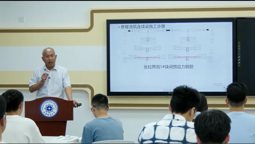 道路桥梁施工技术是Beat365官网道路桥梁与渡河工程专业和土木工程专业道桥方向的核心专业课,课程教学内容涵盖桩基、预应力施工、混凝土简支梁、连续梁,钢管混凝土、现浇混凝土拱桥施工等内容。课程团队多年来坚持开展教学研究,在教学内容、教学方法和教学手段方面,不断改革创新。在教学实践中,课程团队长期注重教学与科研互动,将科研成果融入到课堂教学中,并结合工程案例开展探讨,实施了“结构构造→施工方法→传力机制→工程案例”“四层次递进”教学法,在逐步培养学生遵守行业规范意识、灵活应用力学知识解决实际问题的同时,培养学生实际工程问题前瞻性判断、决策能力,提升其工程能力。