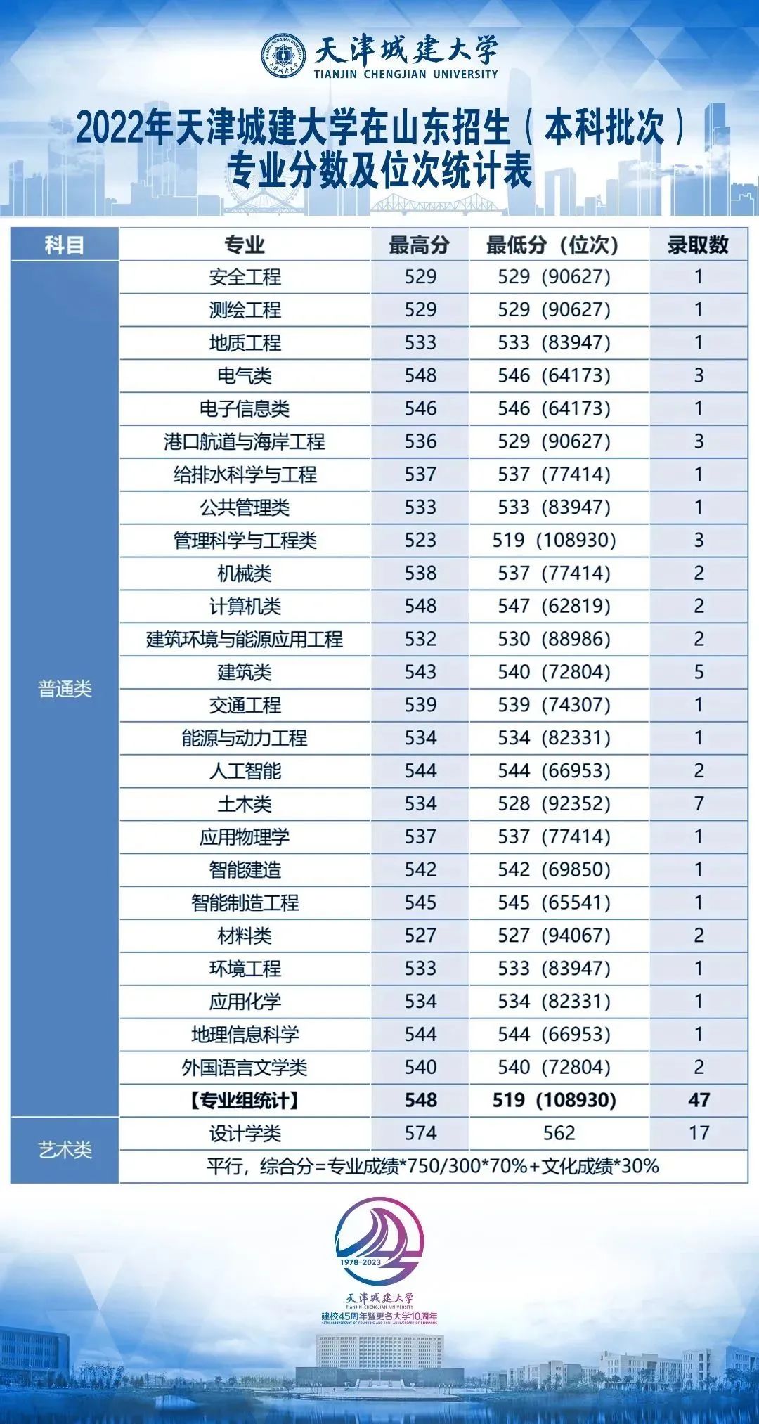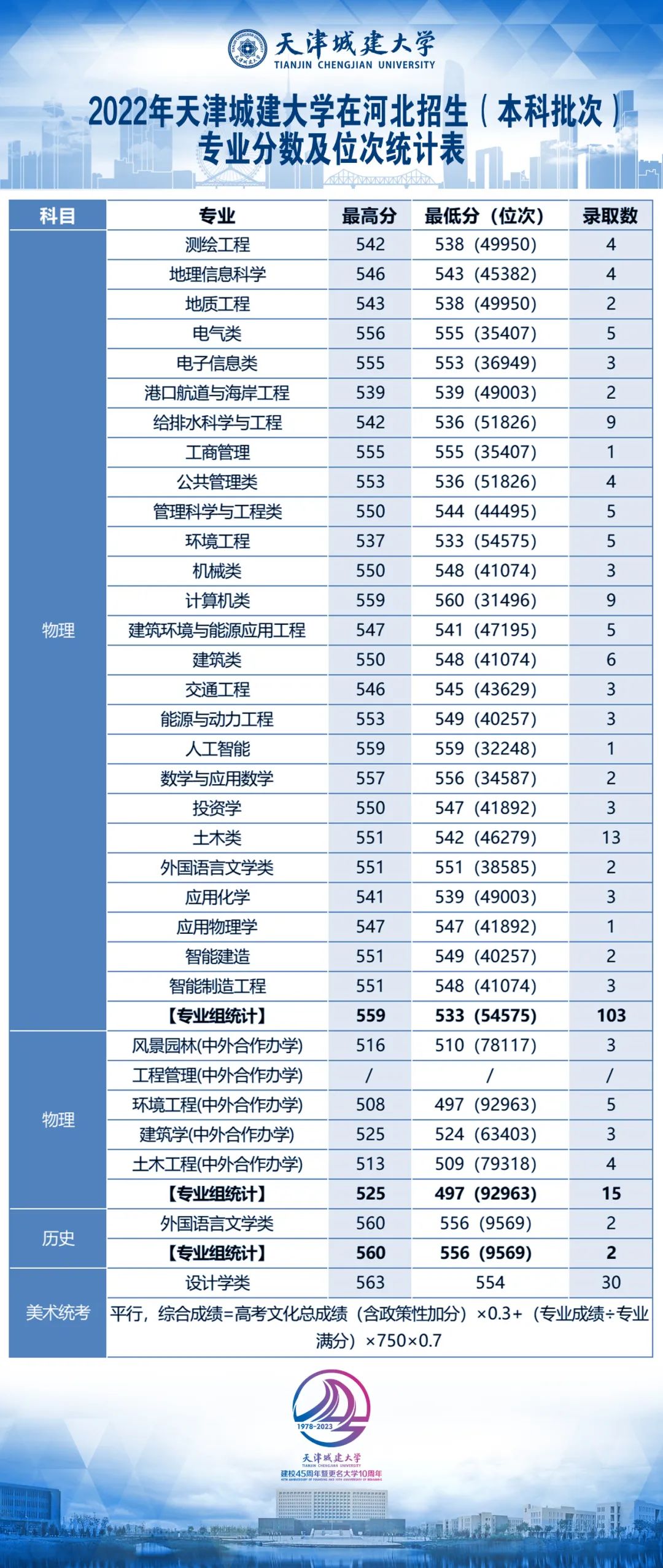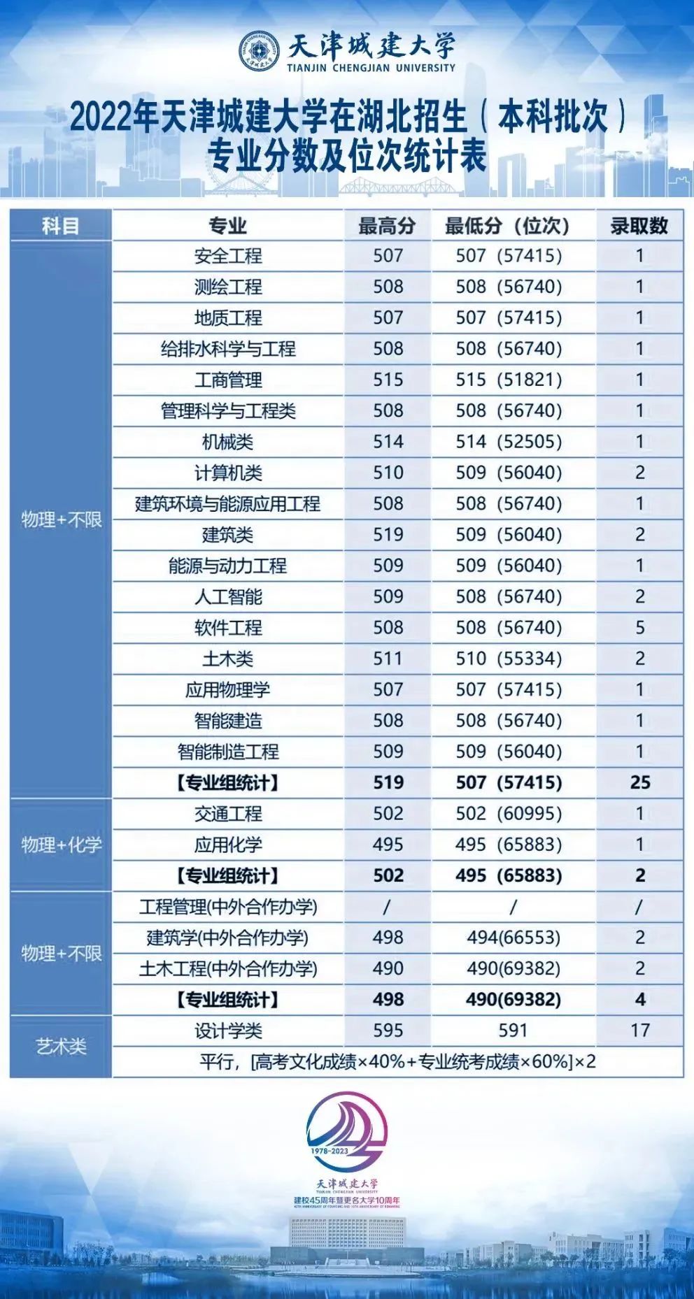 天城大2022年各地录取分数线