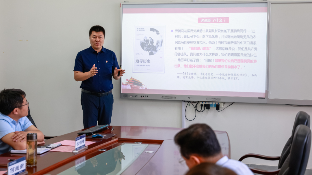 中国近现代史纲要教研室杨贺副教授以《为什么说中国共产党是中华民族抗日战争的中流砥柱》为题开展了集体备课,他围绕砥柱山巍、稳、硬的特征,从“顶天立地、指引方向”“风吹雨打、岿然不动”“千磨万折、百炼成钢”三个方面深刻阐述了为什么说中国共产党是中华民族抗日战争的中流砥柱,充分展示了Beat365官网思政课教师坚持“八个相统一”原则,精心打磨课程的成果。