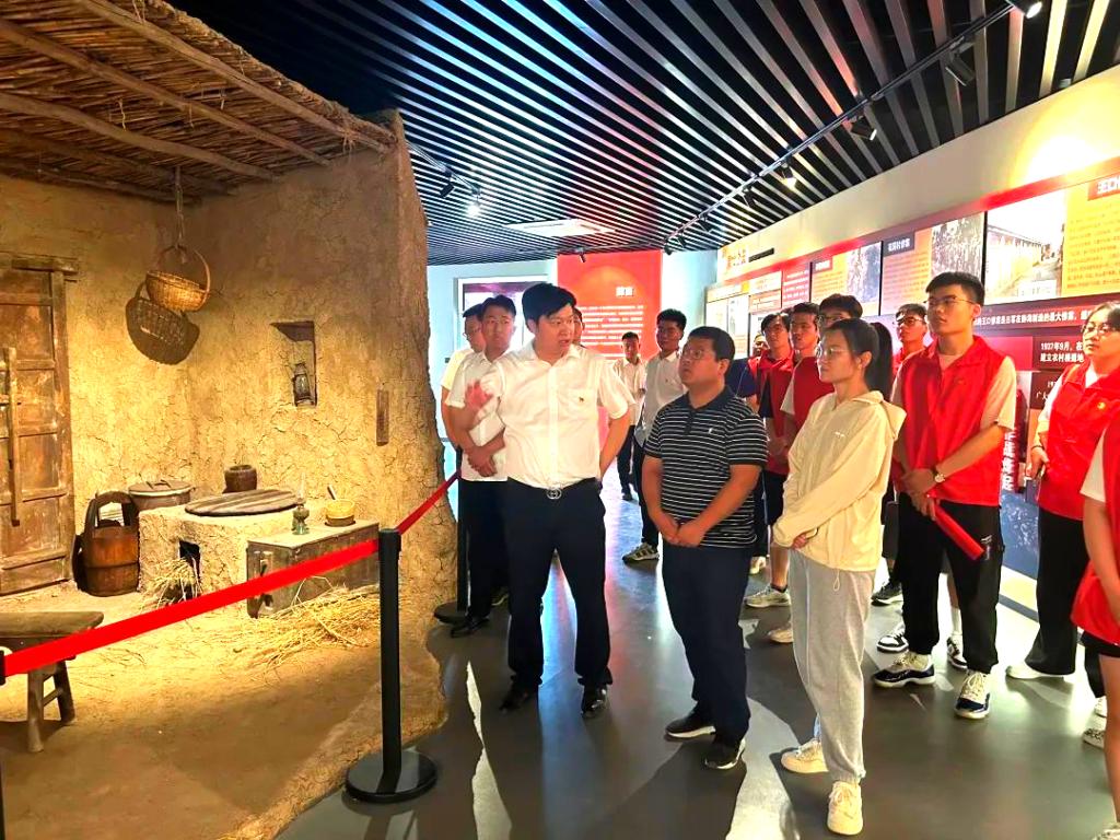 能源与安全工程学院师生党员在瞿阝里村党群服务中心暨静海区成立的第一个党支部进行参观学习、慰问老党员,参加了王口镇“光荣在党50年”纪念奖章颁发仪式,听老党员讲述他的党员经历和党的发展历程,并在党旗下重温入党誓词。