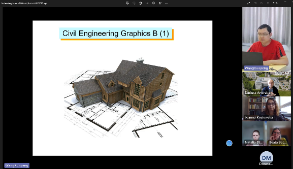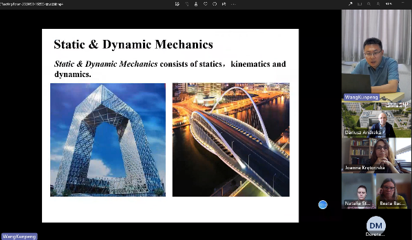 会上,李光旻对与会教师表示欢迎和感谢,介绍了近三年来学院土木工程(中外合作办学)专业建设成果,并提出了在教学中存在的问题,期待以此次研讨会为契机,加深沟通合作交流,为培养人才提供更优质的教育资源。土木工程学院教师郭少龙、张凌博、黄磊从课程内容、考核方式等方面分别介绍了建筑制图、理论力学和房屋建筑学课程;波兰比亚威斯托克工业大学土木工程与环境科学学院教师Joanna Krętowska、Dorota Małaszkiewicz从课程大纲、考核方式、学生表现等方面介绍了静力学、材料力学、建筑工程概论课程。