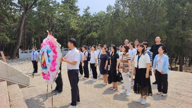 在天津市盘山烈士陵园,参训教师向烈士纪念碑敬献花圈并重温入党誓词,并在盘山革命纪念馆瞻仰烈士遗物、倾听先烈英勇事迹,深刻感受到革命先烈英勇顽强的战斗作风、坚贞不屈的英雄气节和不怕牺牲的革命精神。