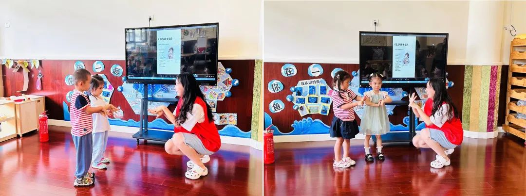 在卫生健康小课堂中,韩蕊阳、李甜歌同学用小儿歌和顺口溜的方式带领小朋友们一起学习了“七步洗手法”增长了健康知识,引导小朋友们养成良好卫生习惯。