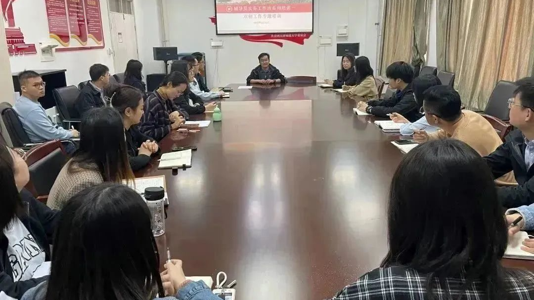 学生双创工作详细介绍了城大众创空间、二级众创空间以及天津市高校众创空间协同培育中心建设要求和任务,系统梳理了学生科技竞赛分类、学生科技奖励统计以及教学业绩指数统计工作中的重点和难点工作,鼓励辅导员以众创空间为载体,以学科竞赛为抓手,以赛促教、以赛促学、以赛促创。