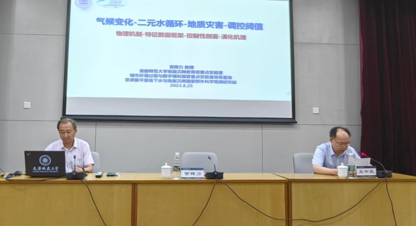 宫辉力教授以“气候变化-二元水循环-地质灾害-调控阈值”为题,系统介绍了基于遥感大数据、监测网小数据与悟空云平台深度结合的地学综合分析范式的基本思想、涉及的主要技术方法及其在气候变化驱动二元水循环与地面沉降耦合演化机理及调控中的应用。