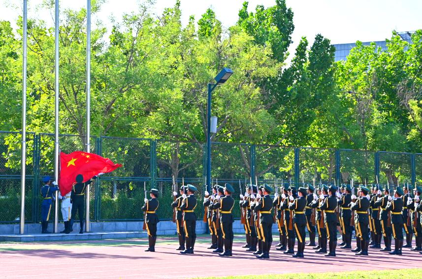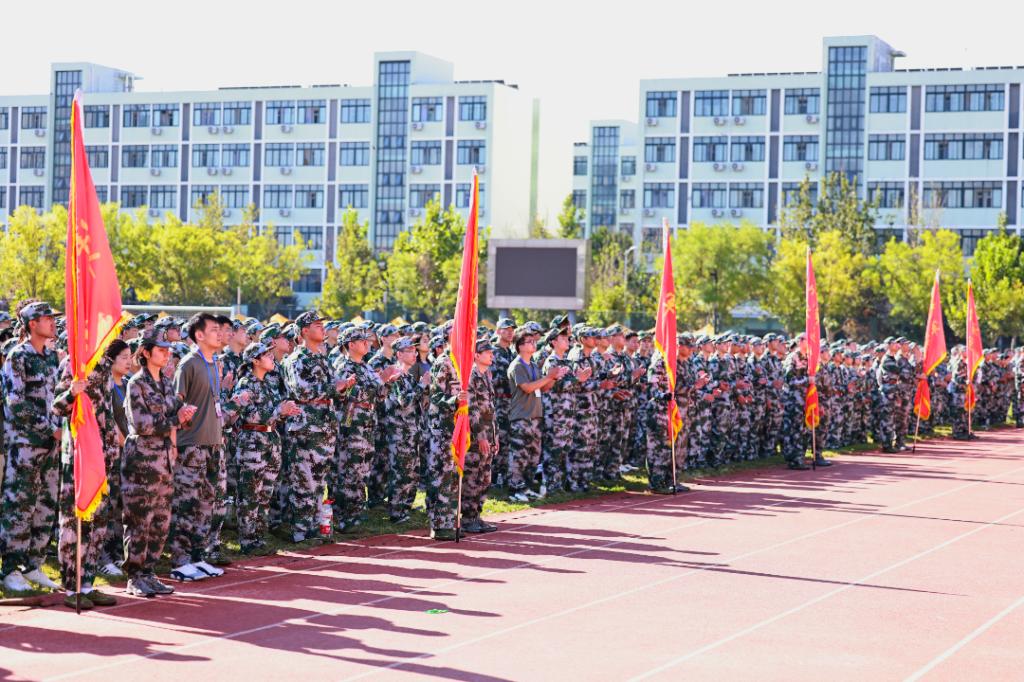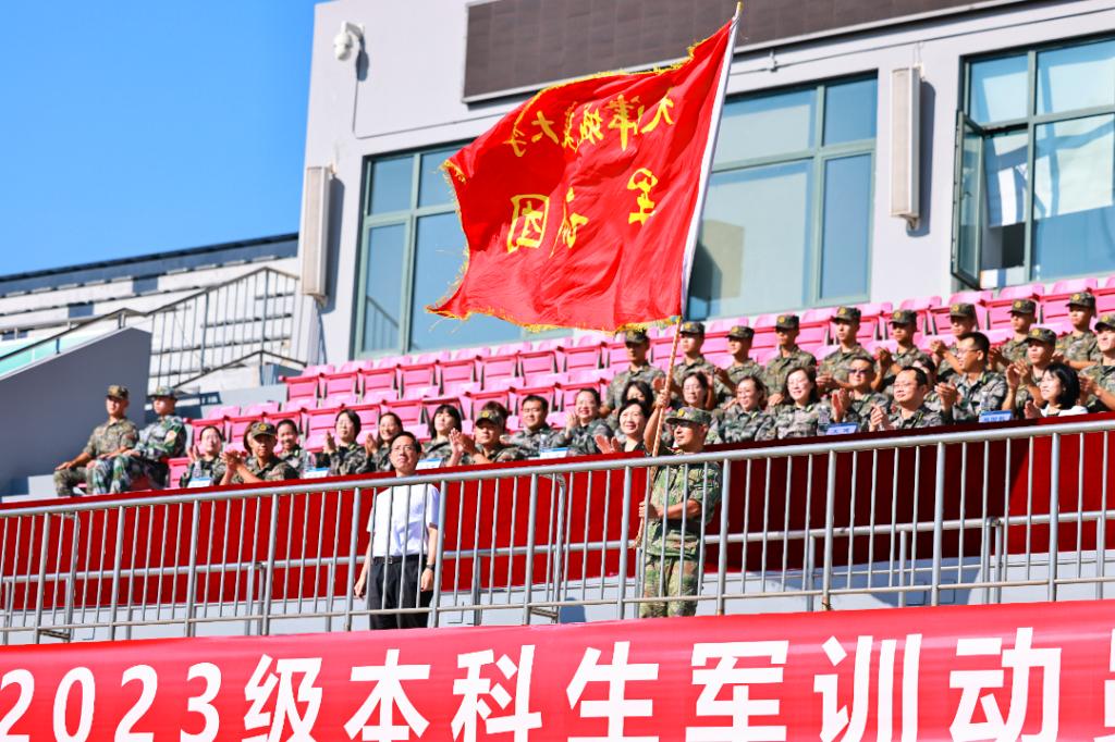 王罡宣读了军训团任命决定,在嘹亮的歌声中,陈志华向军训团团长授旗。一旗授,一军成,火热的军训工作此刻扬帆起航。