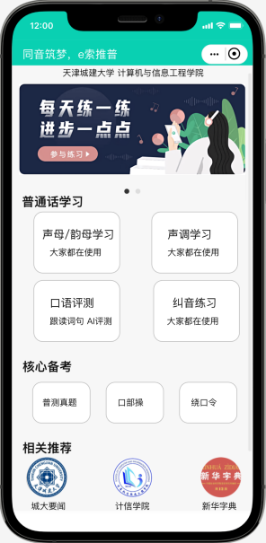 开发“同音筑梦,e索推普”推广普通话应用小程序,实现普通话在线学习功能,以实际应用打通推广普通话的“最后一公里”。